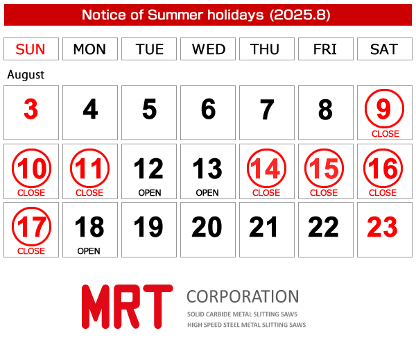 夏季休業:8月14日(木)~8月17日(日)の4日間